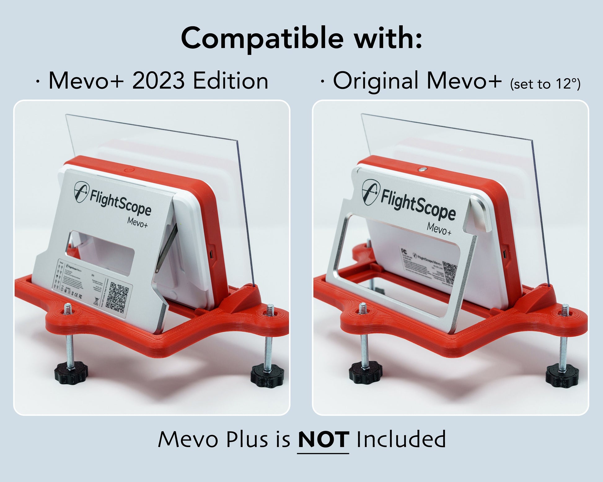 Adjustable Alignment & Leveling Stand for the FlightScope Mevo+ / Mevo Plus 2023, 2024, 2025, and Limited Edition portable golf launch monitor. This product is also compatible with the original version of the Mevo+ but only at the 12° angle used by most simulators.