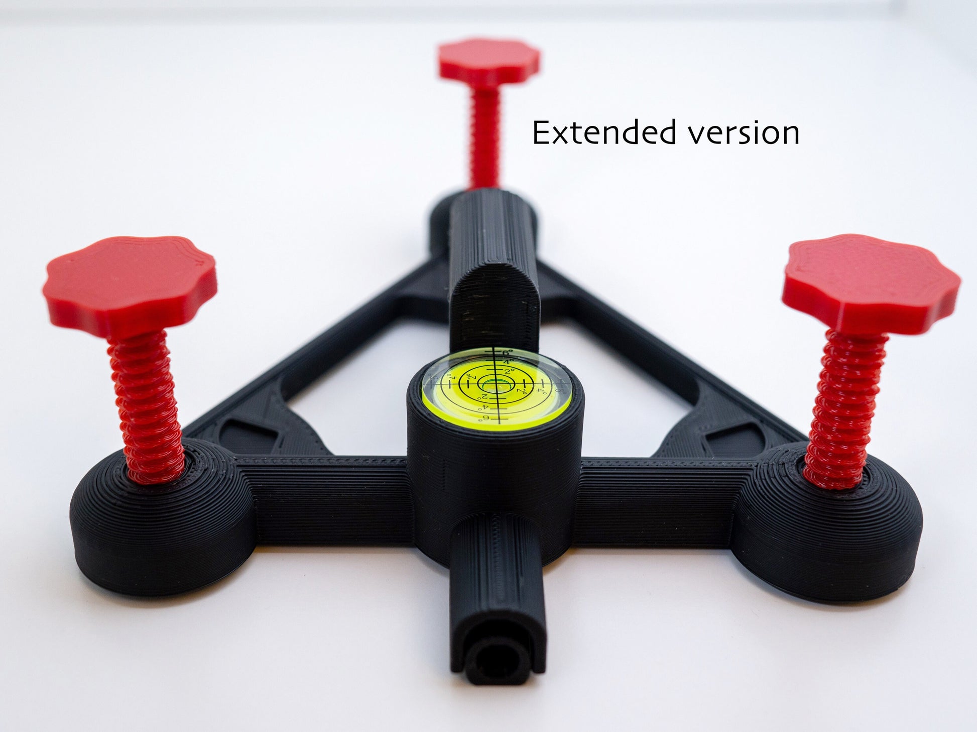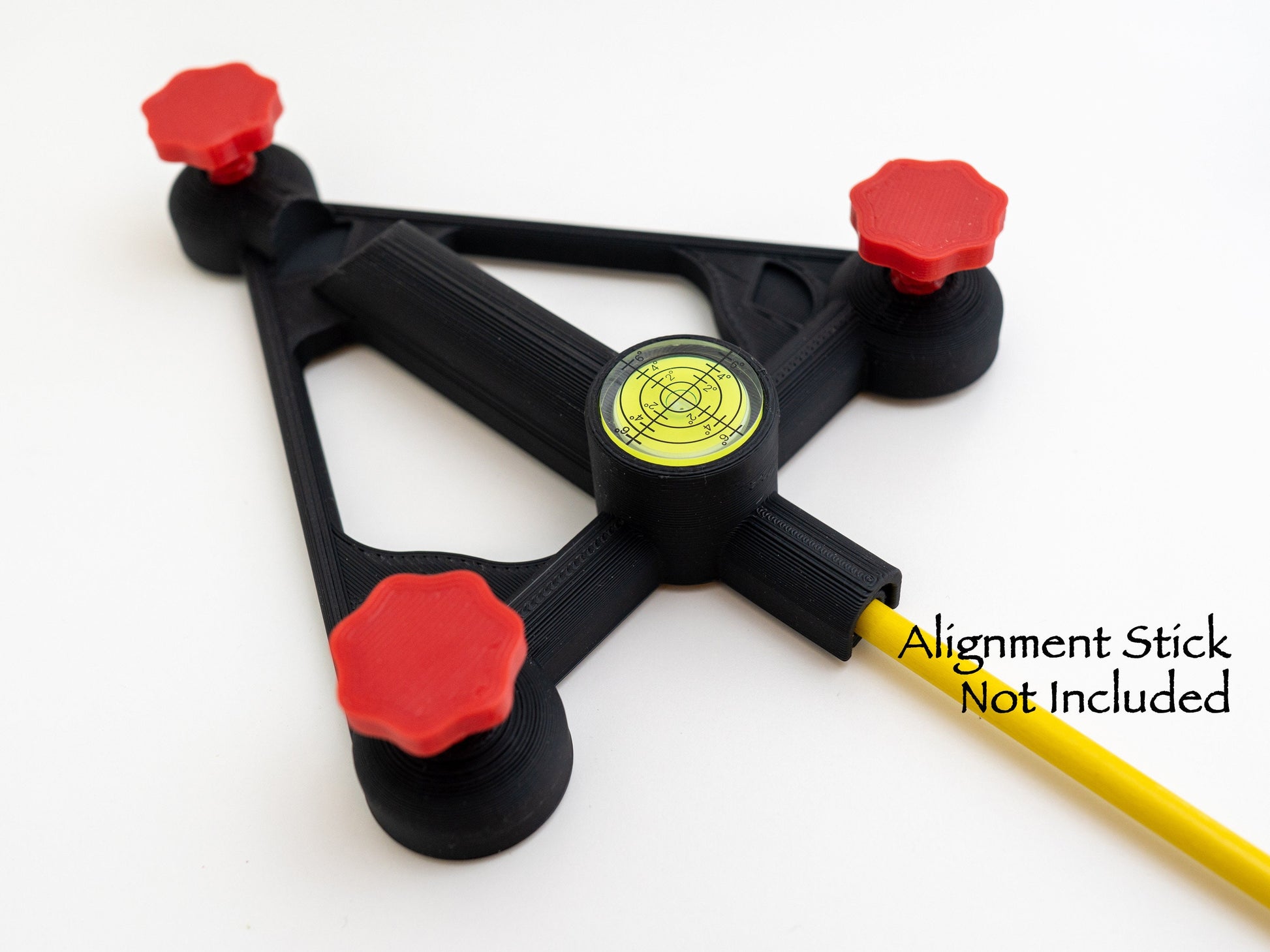- Integrated alignment rod holder stays low to the ground throughout the adjustment range so the alignment rod doesn't float in mid-air or require some sort of support on the other end.