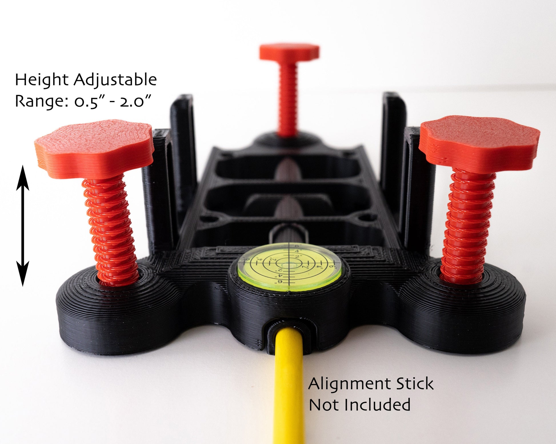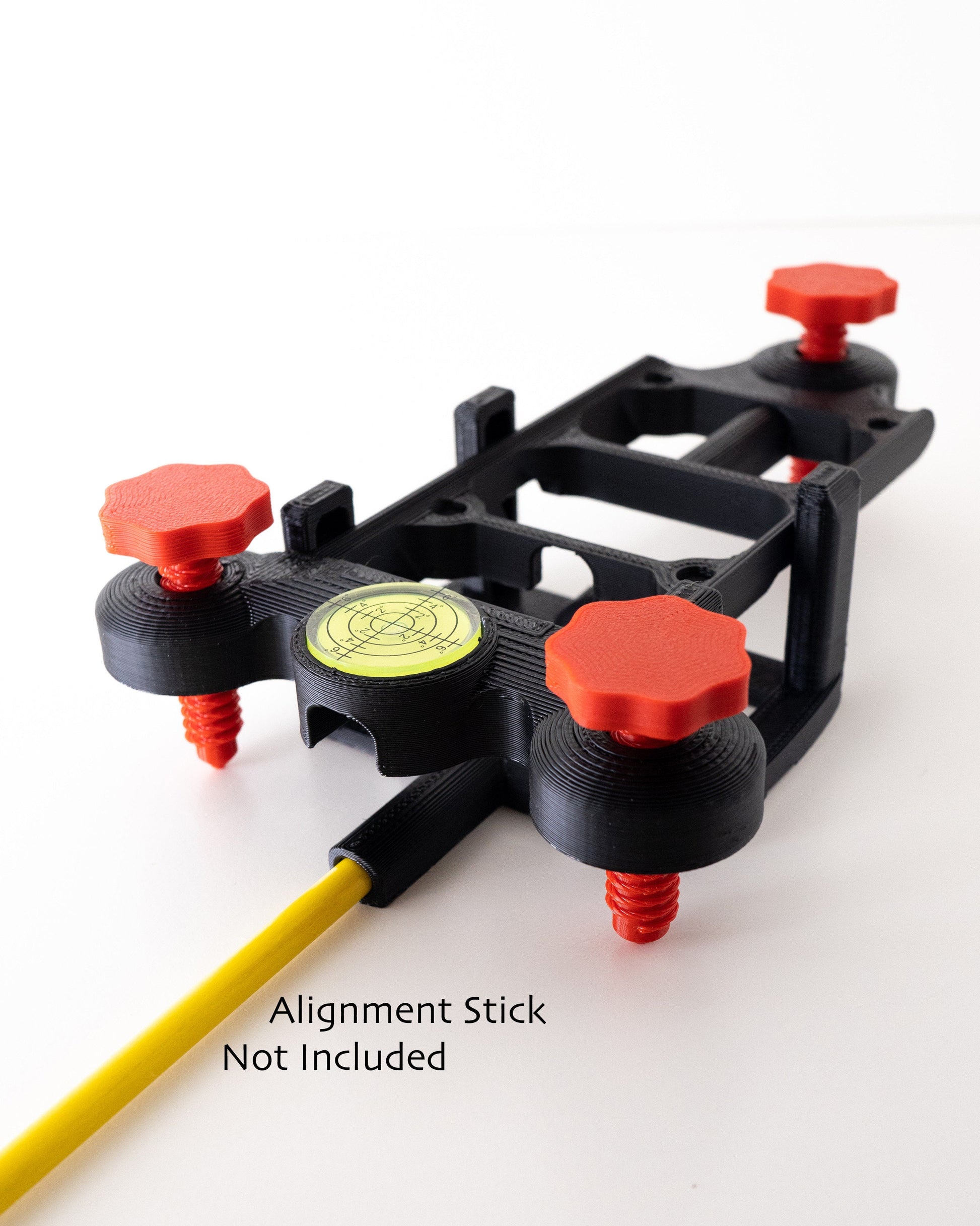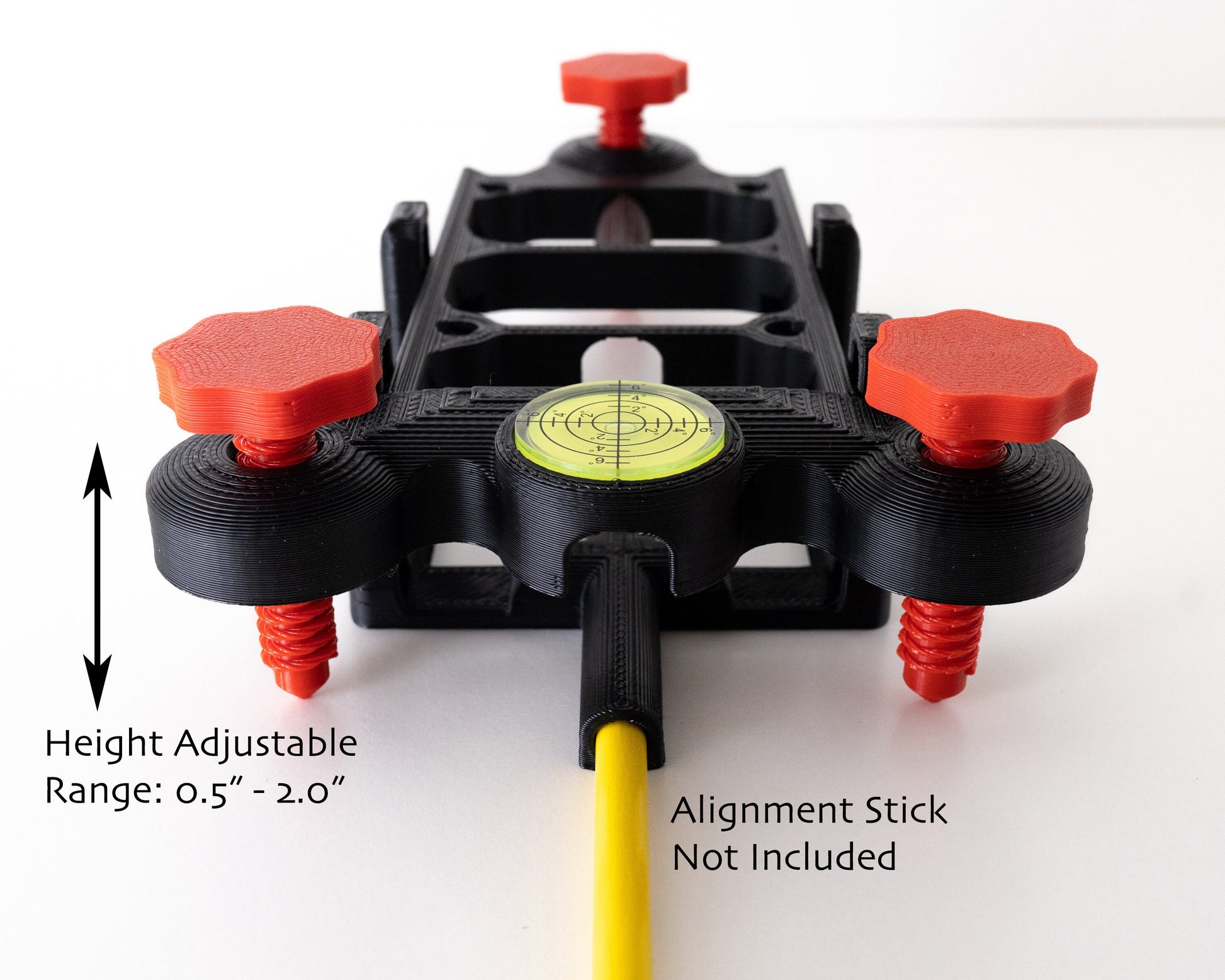 - Integrated alignment rod holder stays low to the ground throughout the adjustment range so the alignment rod doesn't float in mid-air or require some sort of support on the other end.