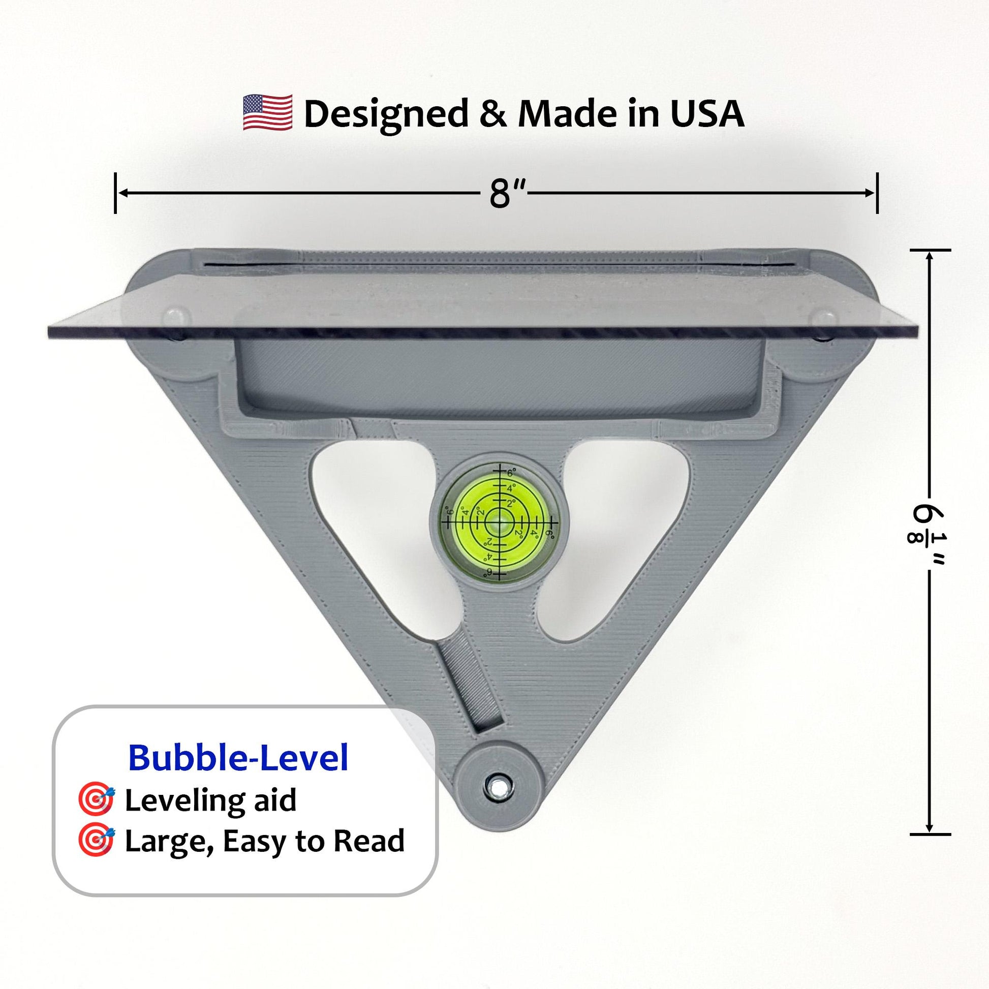 ⛳Integrated large bullseye bubble level with 4-way angle markings provides visual leveling aid.