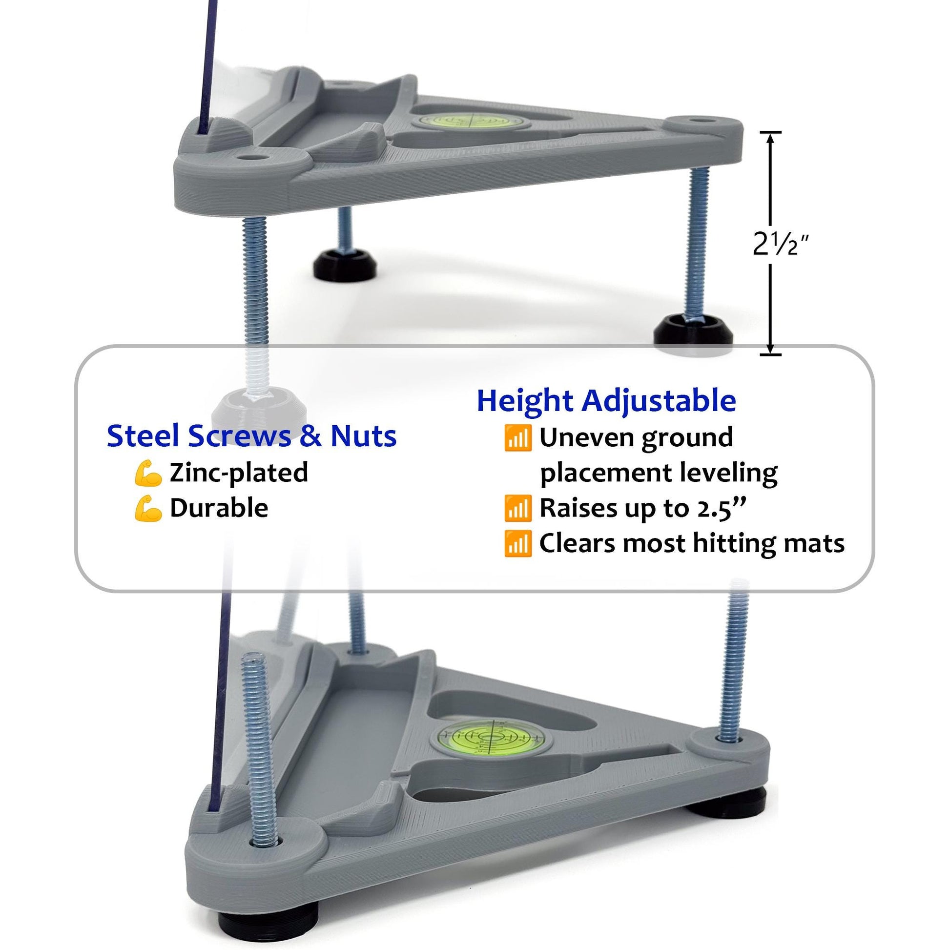 ⛳Height adjustable up to 2.5" to help with uneven ground and / or for elevating your Mevo Gen2 to match the height of your hitting surface / hitting mat