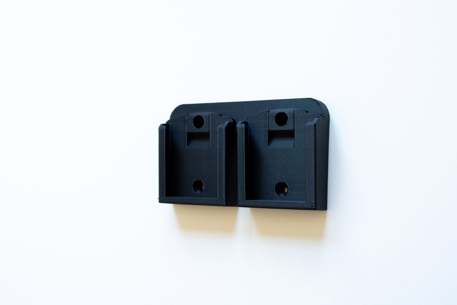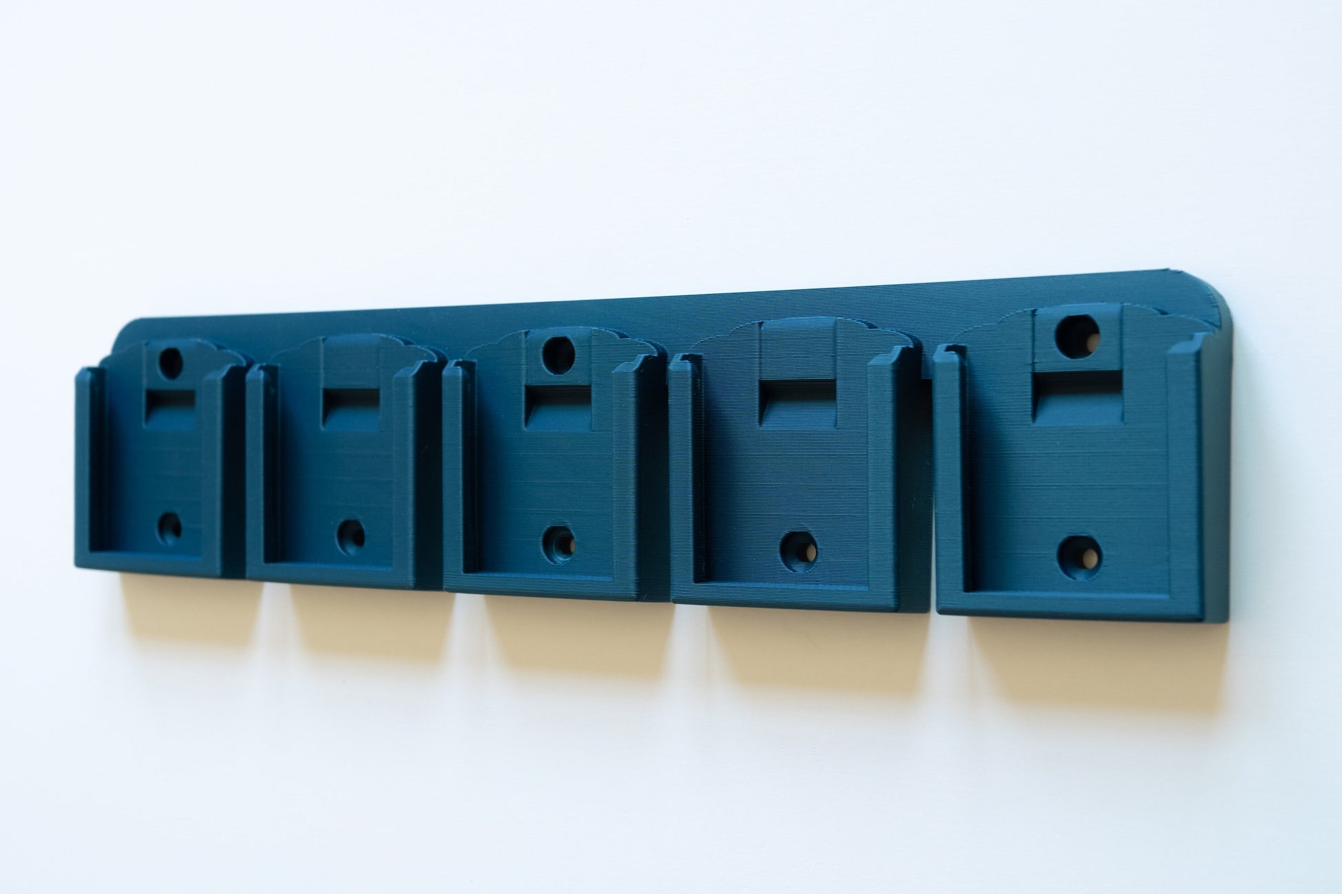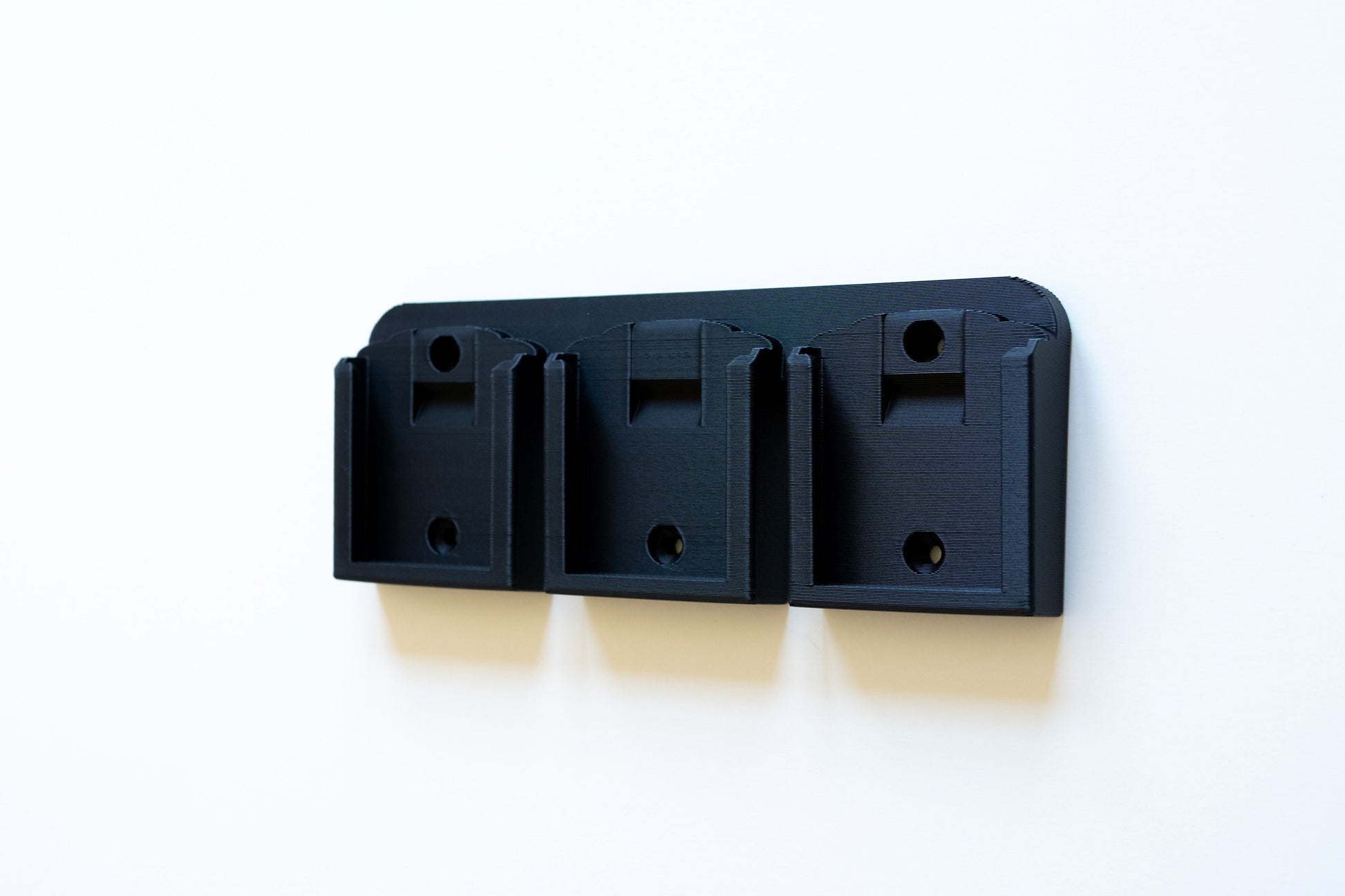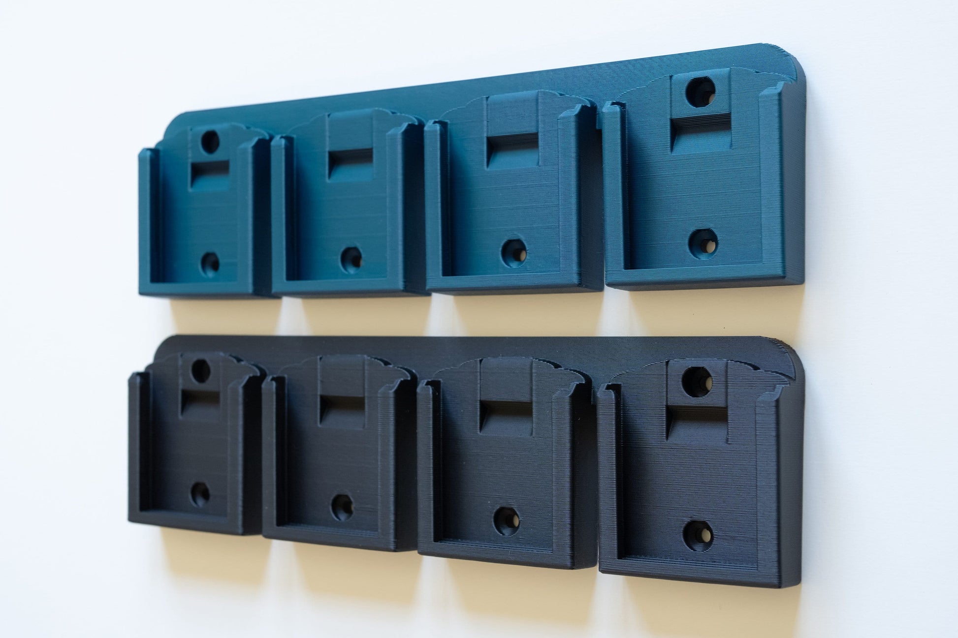 Organize and secure your Bosch 18v batteries with this custom-designed 3D-printed wall mount. Built for convenience and durability, this mount allows you to store your batteries neatly—on a wall, under a shelf, sideways, or even upside-down.