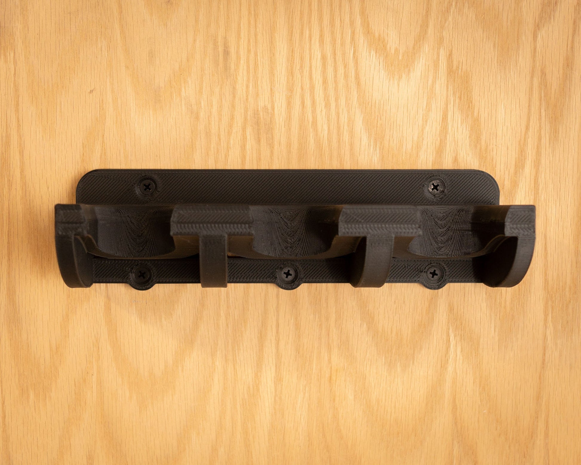 Keep your DeWALT 20v tools organized and ready to use with this custom tool wall mount. Unlike other mounts, this design allows you to hang your tools with or without the battery installed — no need to constantly unclip your battery from your tools before putting them away. The slight upward angle prevents tools from sliding off, ensuring secure storage.