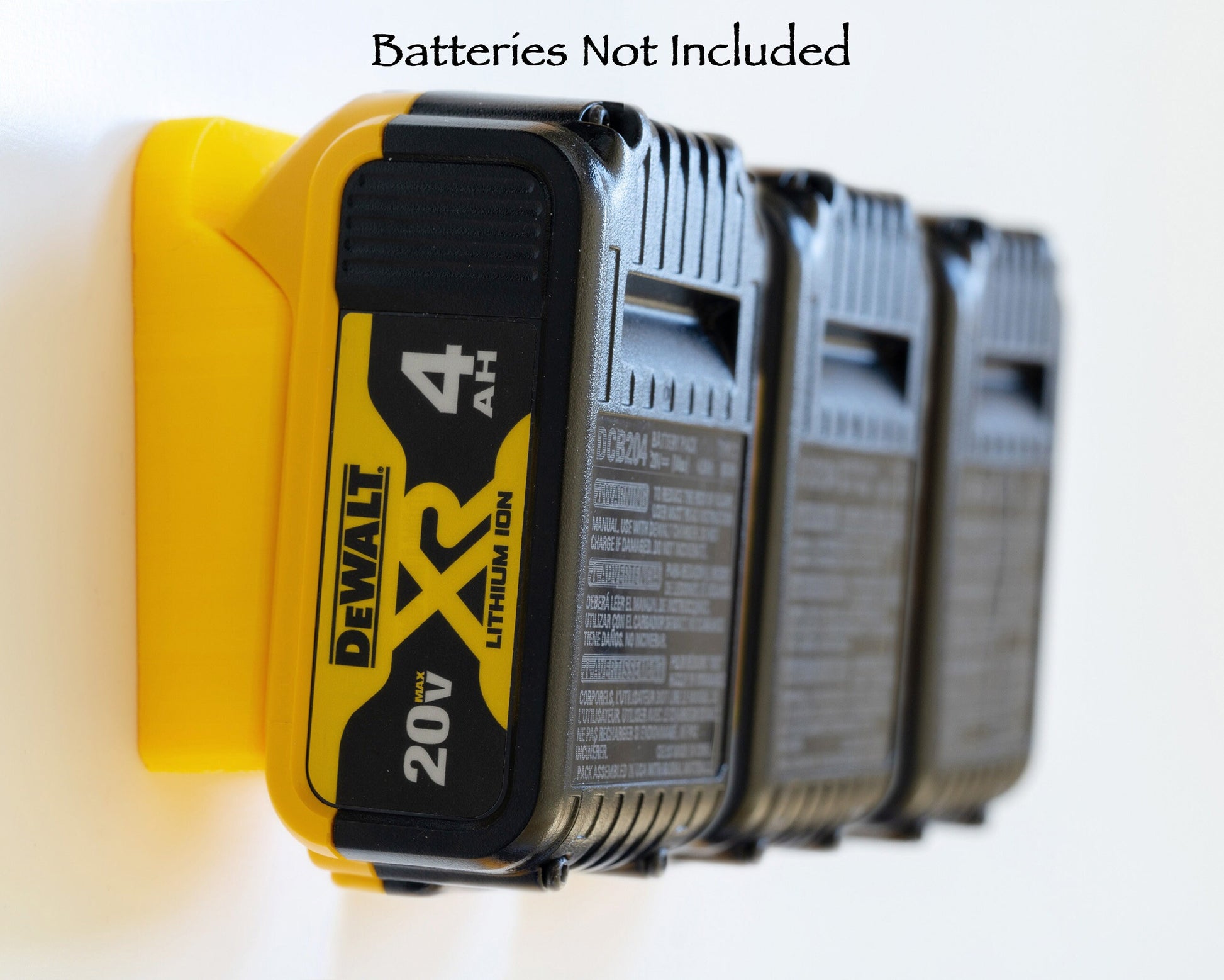 Keep your DeWALT 20v batteries organized and secure with this wall mount. Designed for convenience and durability, this mount allows you to store your batteries neatly—on a wall, under a shelf, sideways, or even upside-down.
