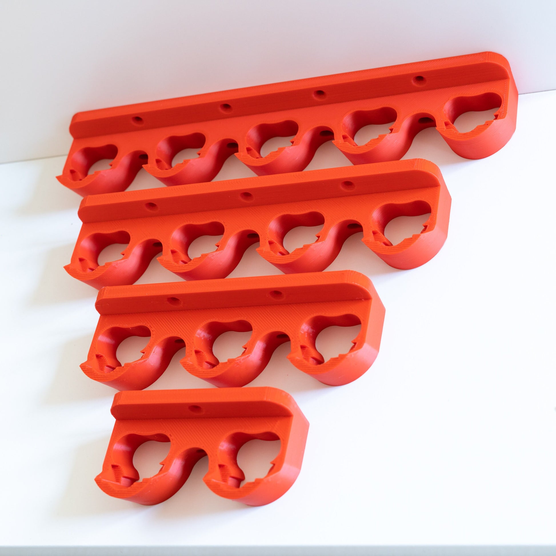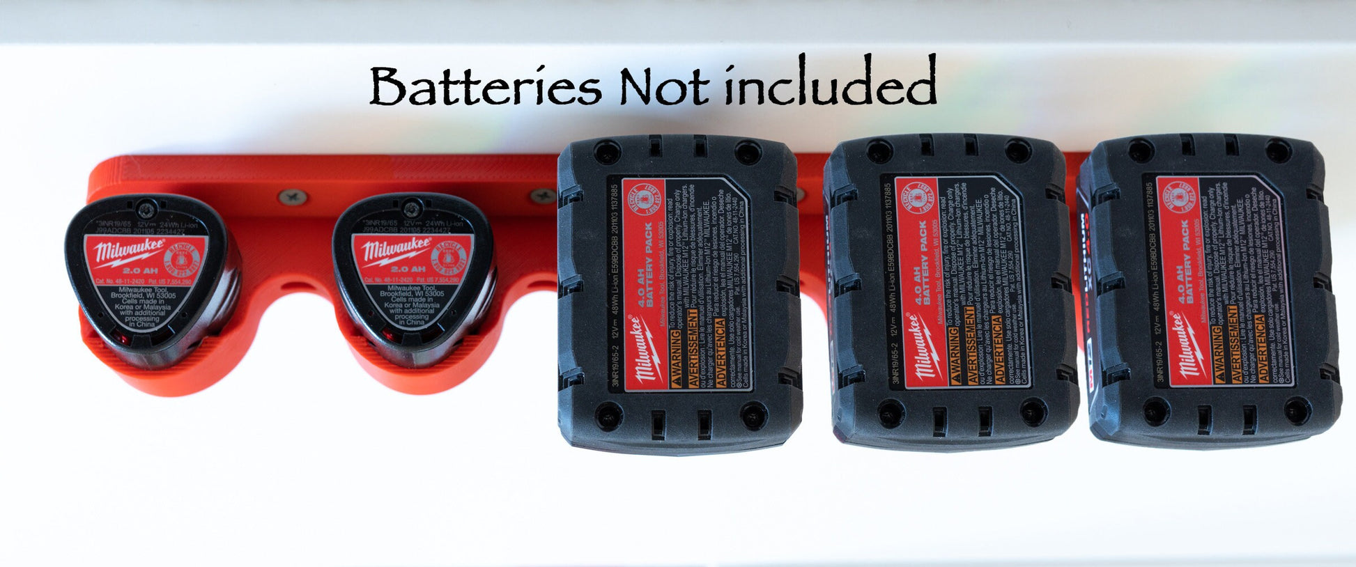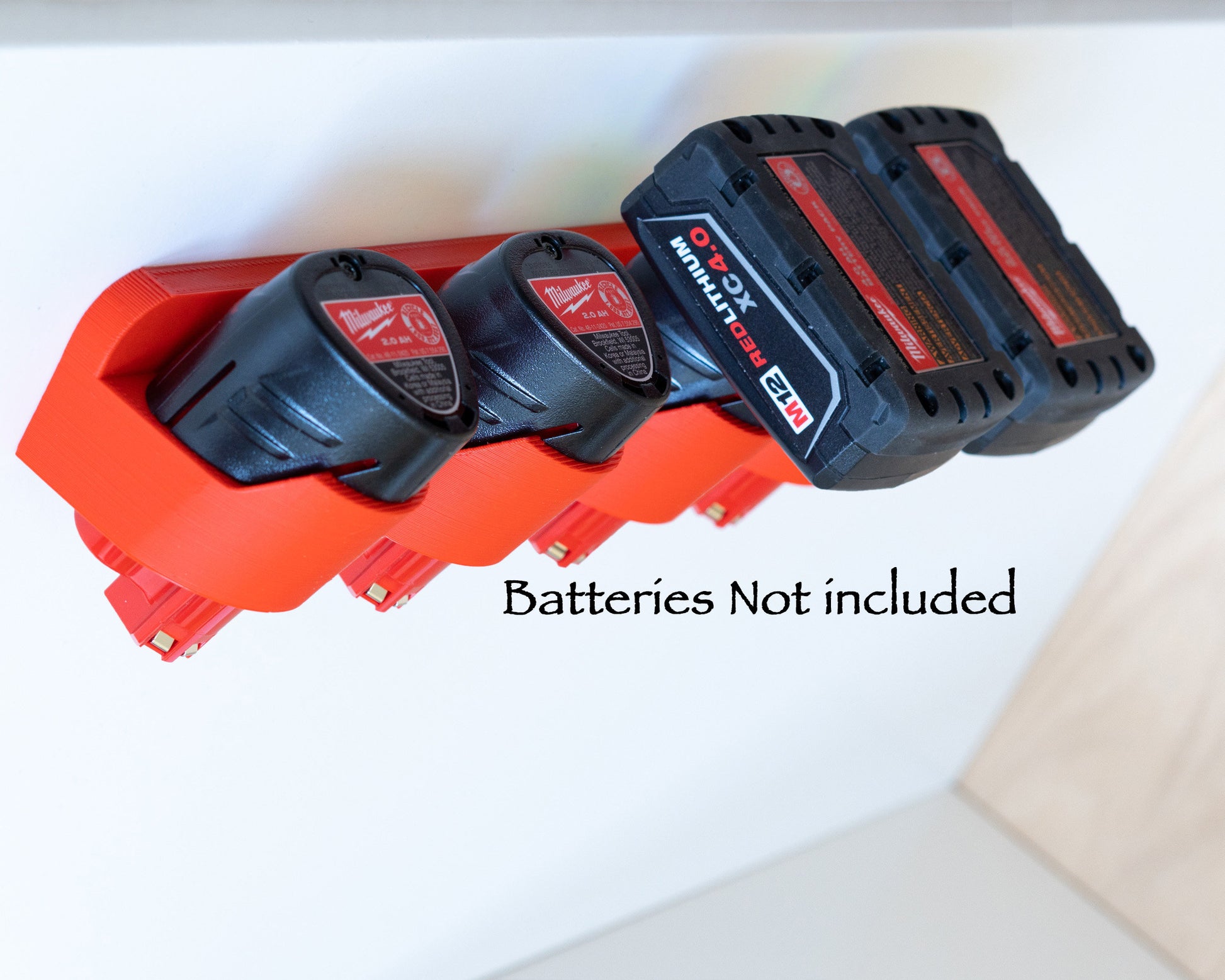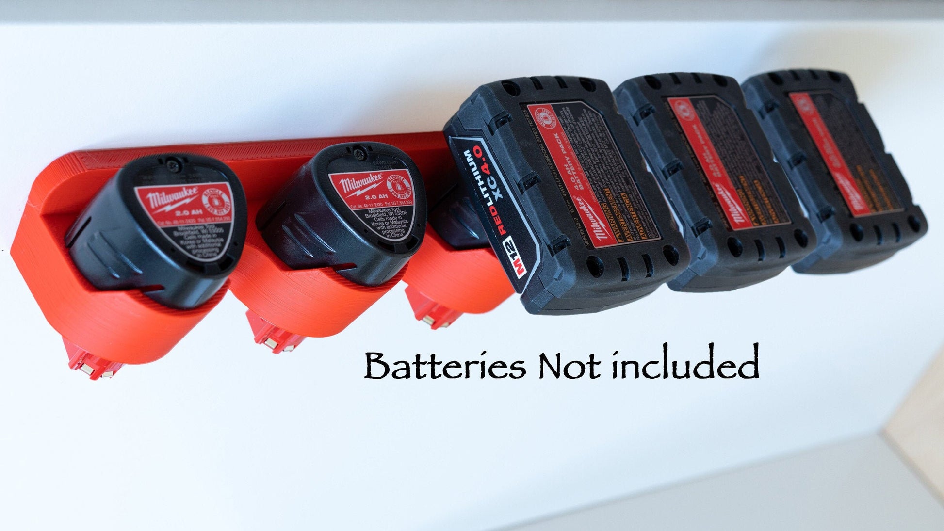 This is a custom latching wall mount designed for Milwaukee M12 Red Lithium 12V batteries, including all M12 FUEL models such as the XC6.0 6Ah. Strong, precisely-engineered for perfect fitment, and versatile, it keeps your batteries organized and securely stored.