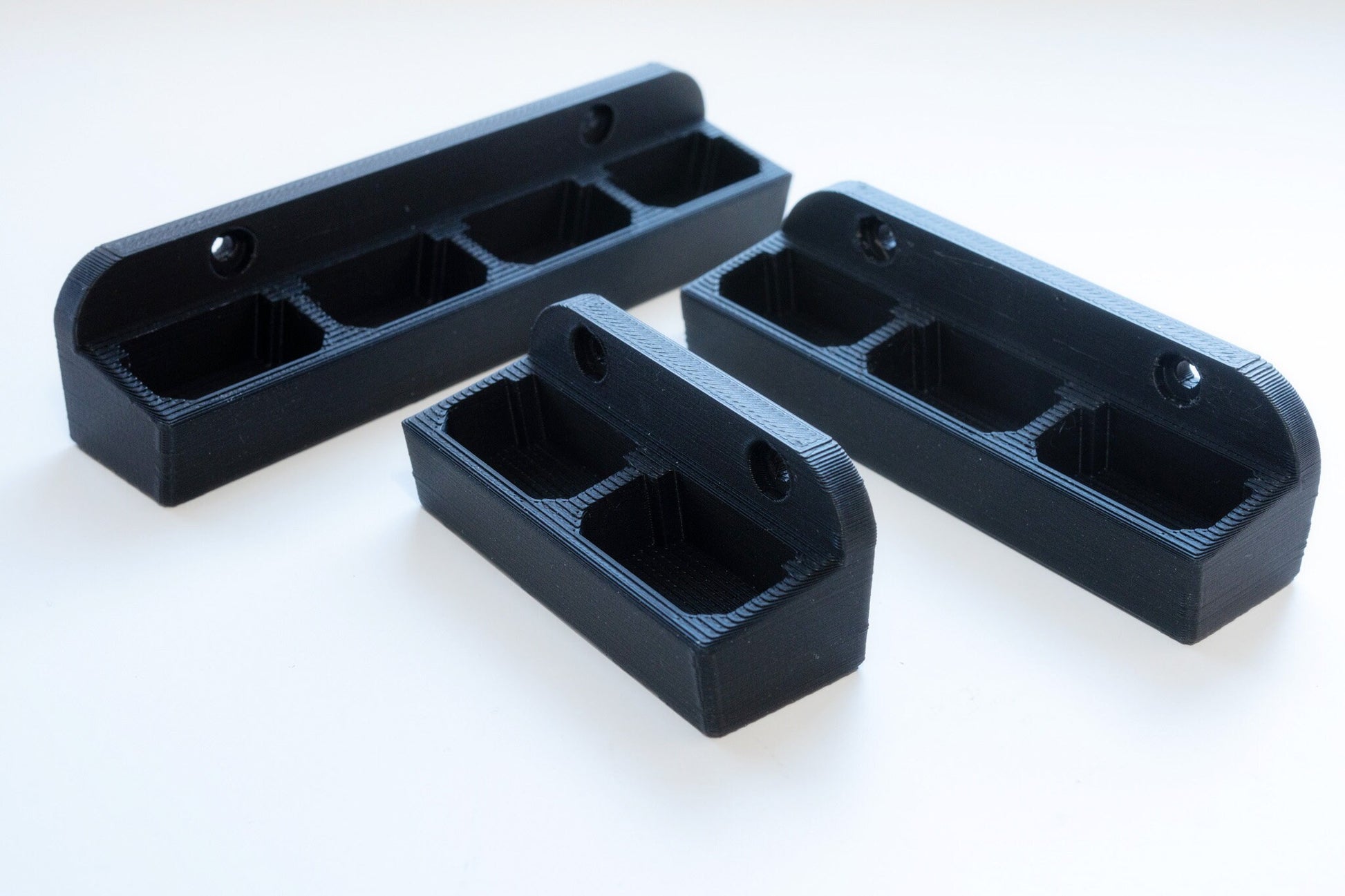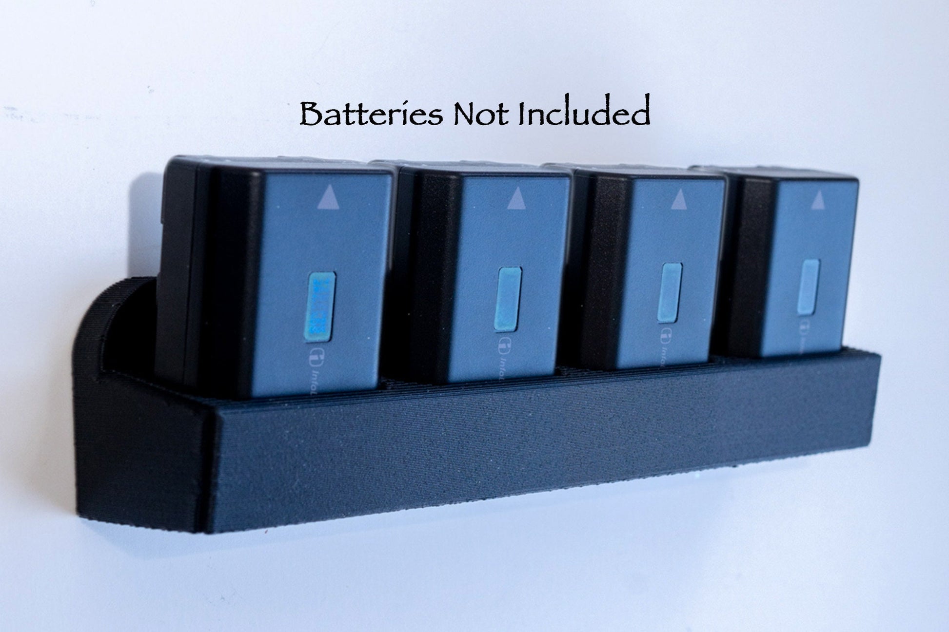 Wall mount for Sony NP-FZ100 camera batteries. The battery area is slightly angled to make it easier to insert and remove the batteries.